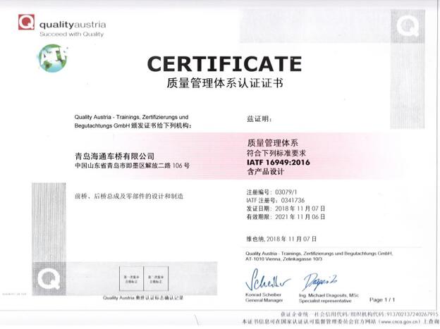 質(zhì)量為基,誠信為本,青島海通車橋?qū)⒁蝗缂韧`行質(zhì)量第一、誠信經(jīng)營的社會(huì)責(zé)任,持續(xù)打造車橋精品,向質(zhì)量求效益,以質(zhì)取勝。